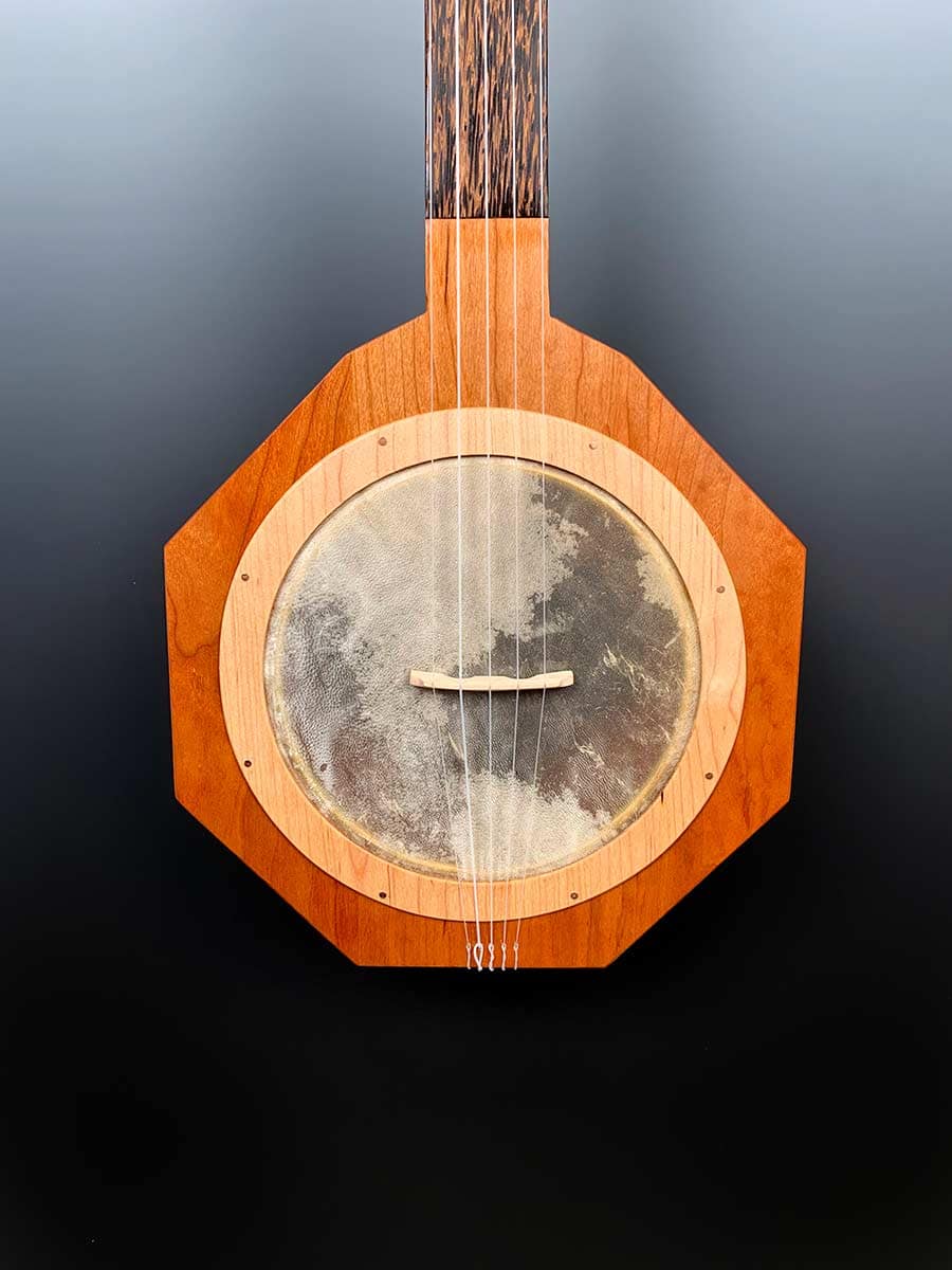 This KY octagon banjo is one of my favorites! It has a wenge fingerboard, cherry neck and body, wenge inlay, ebony tuners, and a brass tone ring. It is a blast to play! You can see a tour of it and hear it HERE.